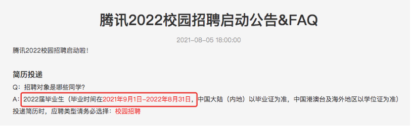 就拿2022腾讯校招来说,招聘要求特别明确了需要2022应届毕业生。如果错失机会,不仅参加不了国内校招,更重要的是,国内各大城市的海归落户政策和相关补贴、福利也享受不到了, 到最后就真的是一无所获了 。