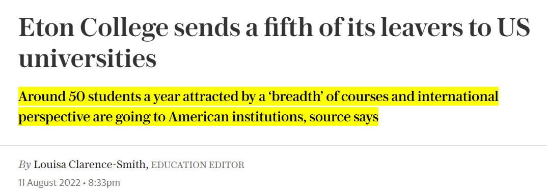 第一个提到的原因是,有越来越多的伊顿学生,被美国广泛的学习项目和国际视野所吸引。