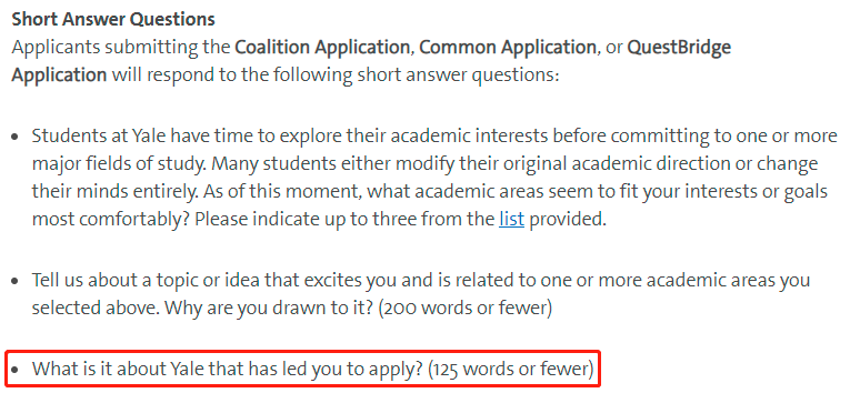 促使您申请耶鲁大学的原因有哪些?(125字以内)