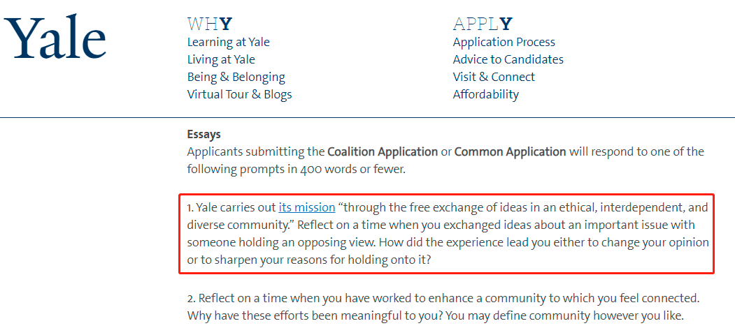 新的申请季,耶鲁大学文书简答题最后一题换了新题目,主文书的第一道题目也发生了改变。