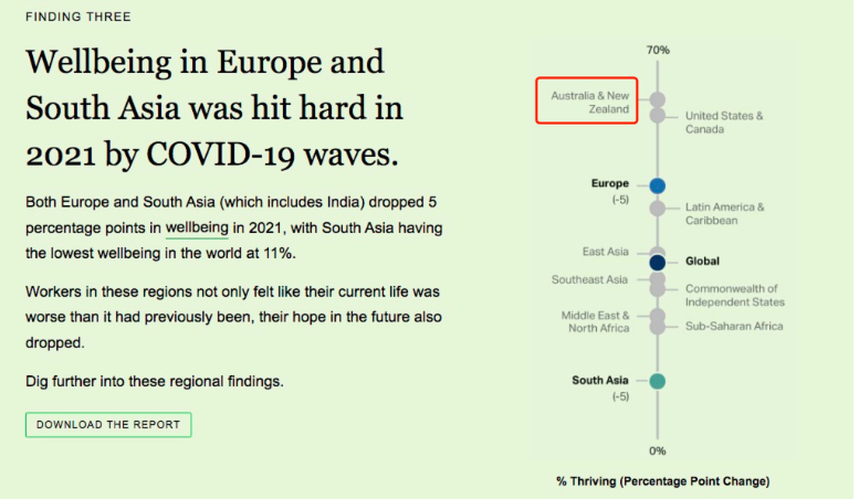 这两天,澳洲打工人因为一份报告成为全世界都羡慕的对象。 在美国调查机构盖洛普(GALLUP)调查的2022年全球工作场所报告(State of the Global Workplace:2022 Report)中,