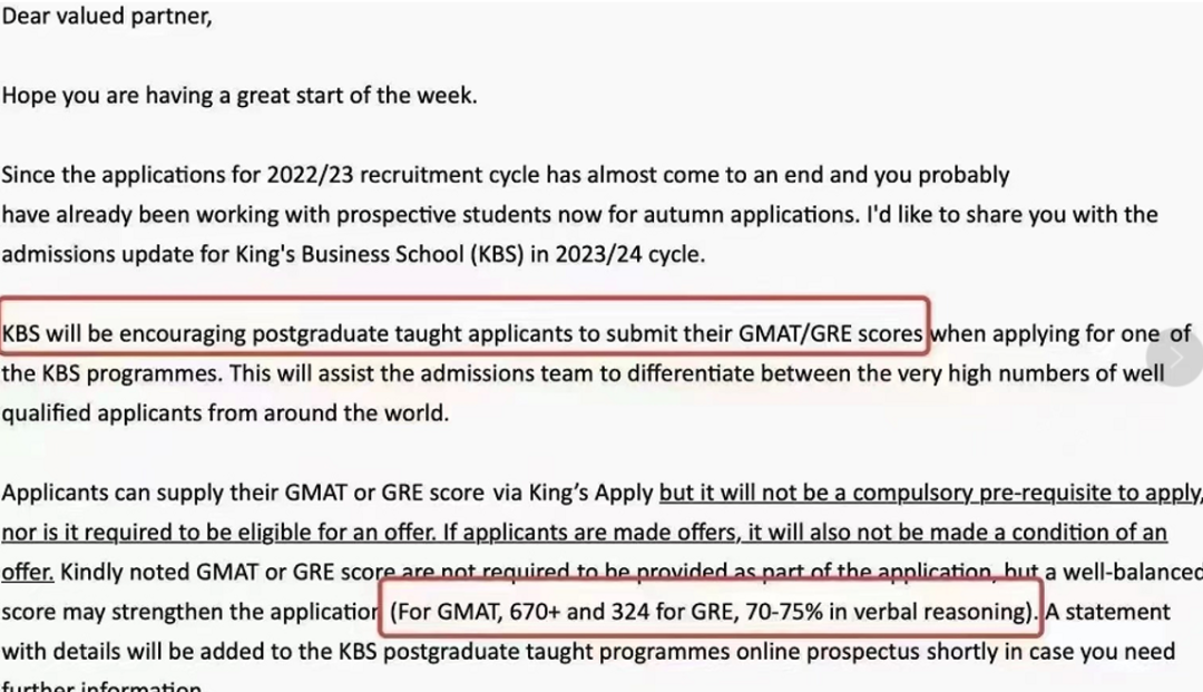 伦敦大学国王学院(KCL)商学院强烈建议申请者提交GMAT或者GRE成绩。其中,GMAT建议670+,GRE建议324+,且70-75%(verbal)。
