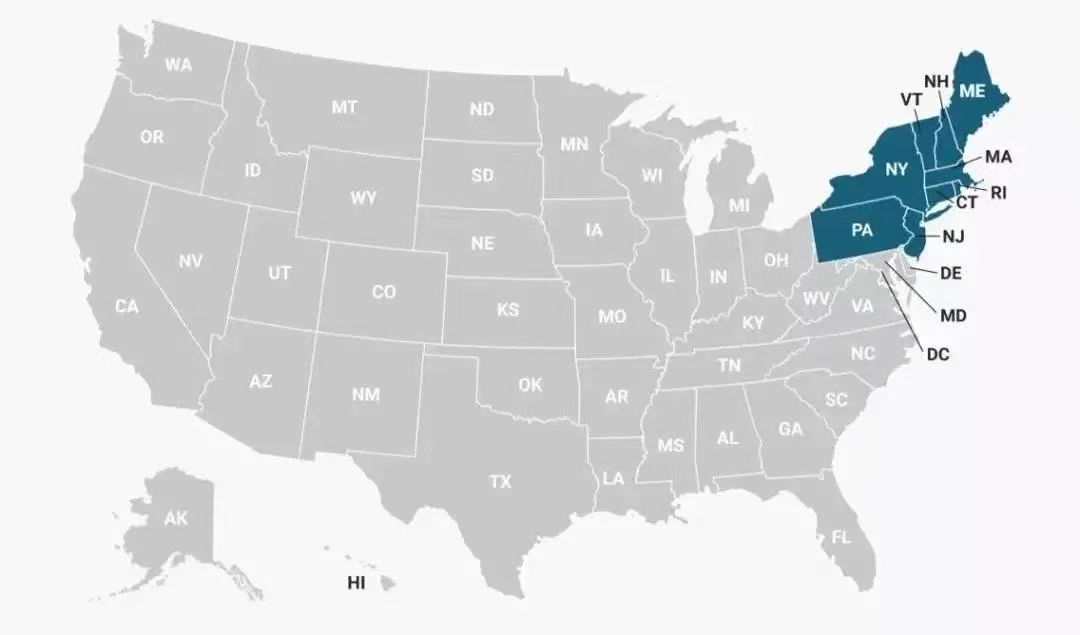 代表城市:纽约,波士顿,费城,华盛顿哥伦比亚特区。