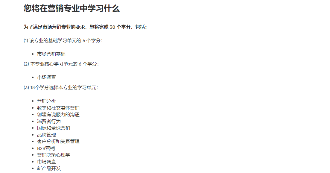 营销专业建立在基本营销原则的基础上,让学生在营销策略和规划方面处于领先地位,包括市场研究、沟通、消费者行为以及新产品的开发和营销。