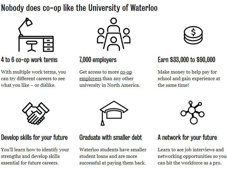 接下来,我们来介绍另一个滑铁卢大学的特色 — 带薪实习。滑铁卢大学的带薪实习项目目前是世界最大的。
