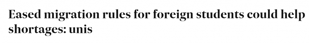 据《澳洲金融评论报》报道,游说团体澳洲大学(Universities Australia)表示,应该简化国际学生的移民途径和毕业后的工作签证,这样澳洲才能受益。