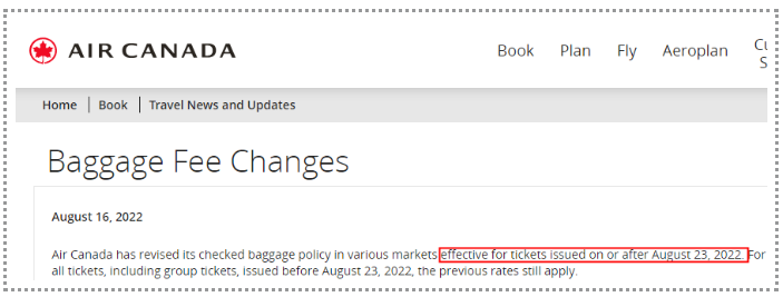 目前,加拿大和中国之间的旅客可以免费托运两件行李。加拿大航空公司在8月16日的公告中表示,新的托运行李收费政策对2022年8月23日或之后发行的所有机票有效。2022年8月23日之前发放的所有门票,包括团体票,仍适用之前的政策。