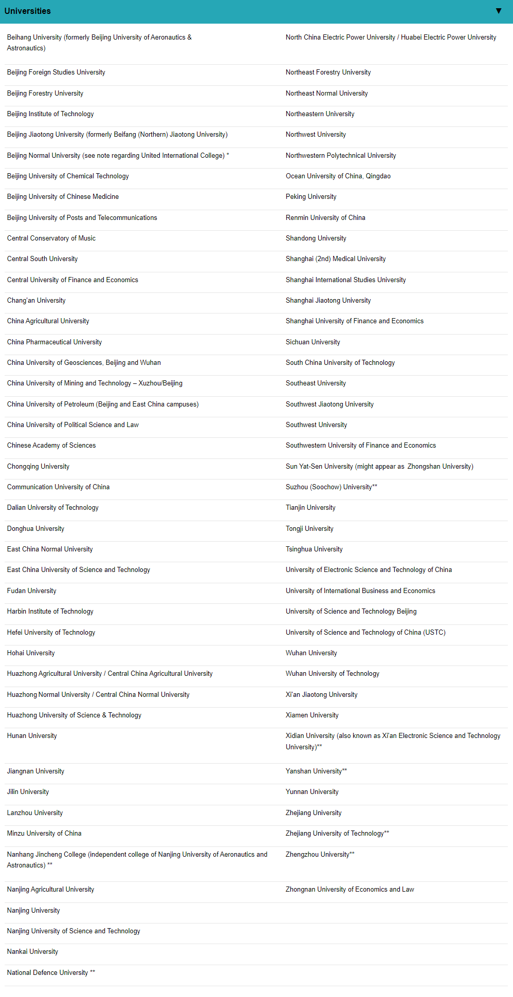 标有 的大学,如果是北京师范大学-香港浸会大学联合国际学院或香港中文大学(深圳)的学生/毕业生,则需要满足针对中国香港地区的入学要求。
