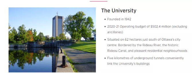 ▷ 卡尔顿大学位于加拿大首都渥太华市中心,享受政治,经济政策优势明显