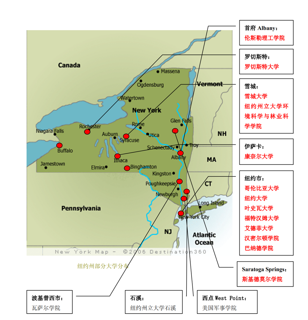 纽约州拥有很多大学,这些大学有常春藤名校,很多都是USNEWS排名前60的学校: