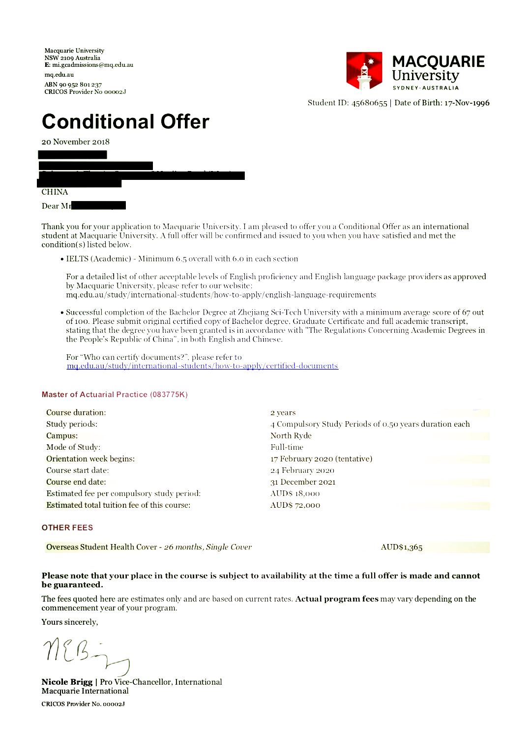 由于澳洲大学都是滚动录取,说得再直白一些就是先到先得。有的热门专业竞争十分激烈,可能在学校申请截止日期前就已经满位了。一般来说,澳洲的大学都是可以提前一年到一年半递交申请。有的学校要求学生只要出具五个学期的成绩单就可以进行申请。这样一来,明明自己有机会上的好学校就被别人提前一年半申走了,真是欲哭无泪。如果手里能拿着一个 Conditional Offer,心里就不慌了。