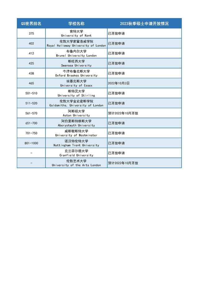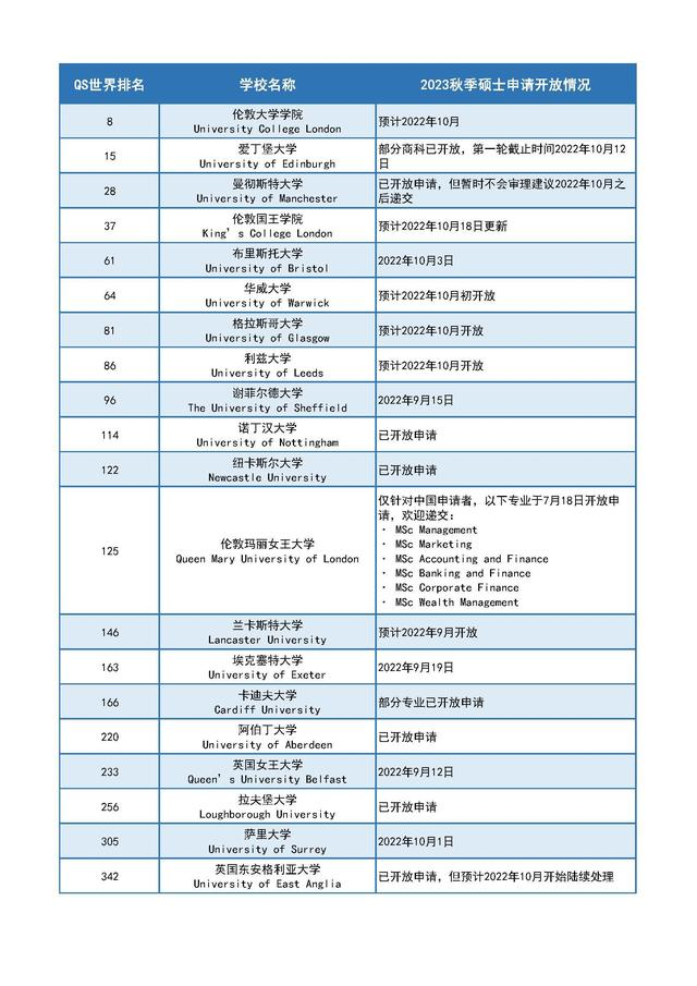 2022fall留学季已经迎来了收官,2023fall的申请也开始了,很多同学经常会问学校是否已经开放申请,这是个好的信号,说明英国留学申请的先到先得规则,大家都很熟悉了。