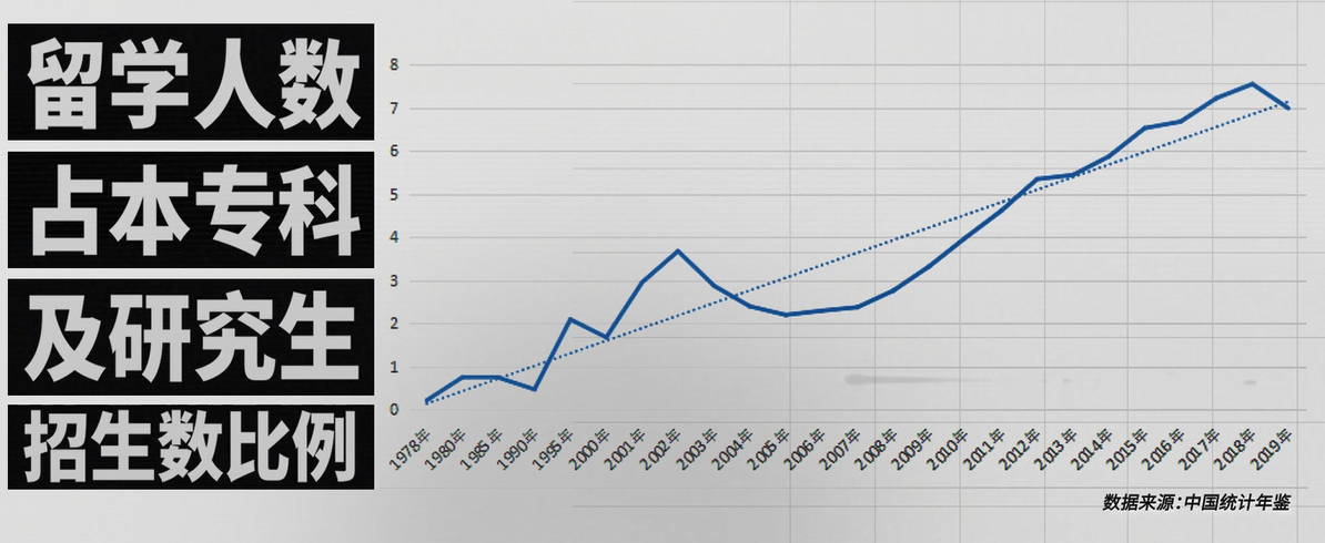 这么多年来,出国留学人数的增速是远超国内大学扩招增速的。