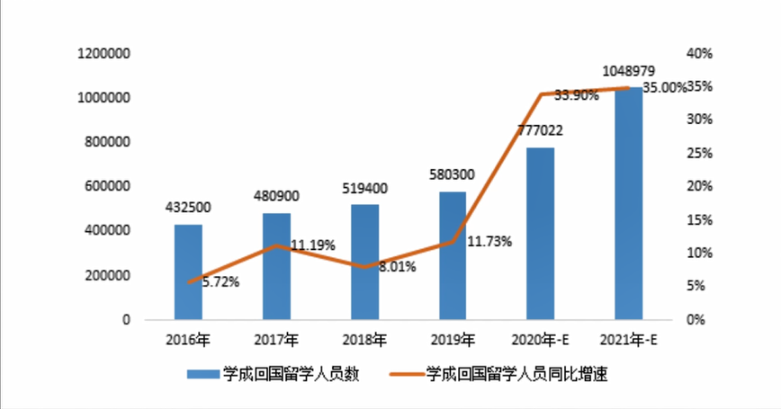 毕业后,选择回国发展的学生比例也不断提高,特别是疫情之后 。《2020中国海归就业创业调查报告》统计发现,2020年海归总人数同比增长了三分之一,从去年开始,每年海归总人数已经突破百万。