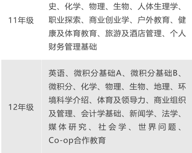 12年 级英语: 1个学分 数学: 2个学分 11年级现代历史: 1个学分 理科:1个学分 艺术类课程:1个学分