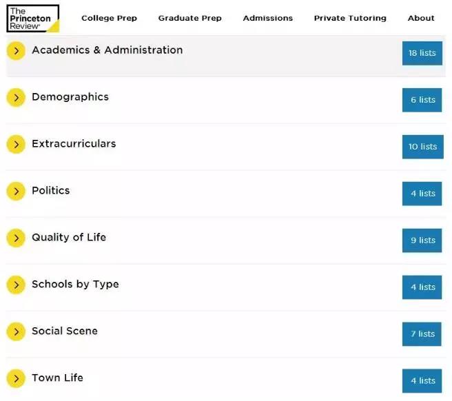 不同于U.S News或其他排名,每年《普林斯顿评论》会针对美国一些院校的在校学生进行调查统计,从学生的在校体验展示出声誉排名和学术排名之外的大学排名。