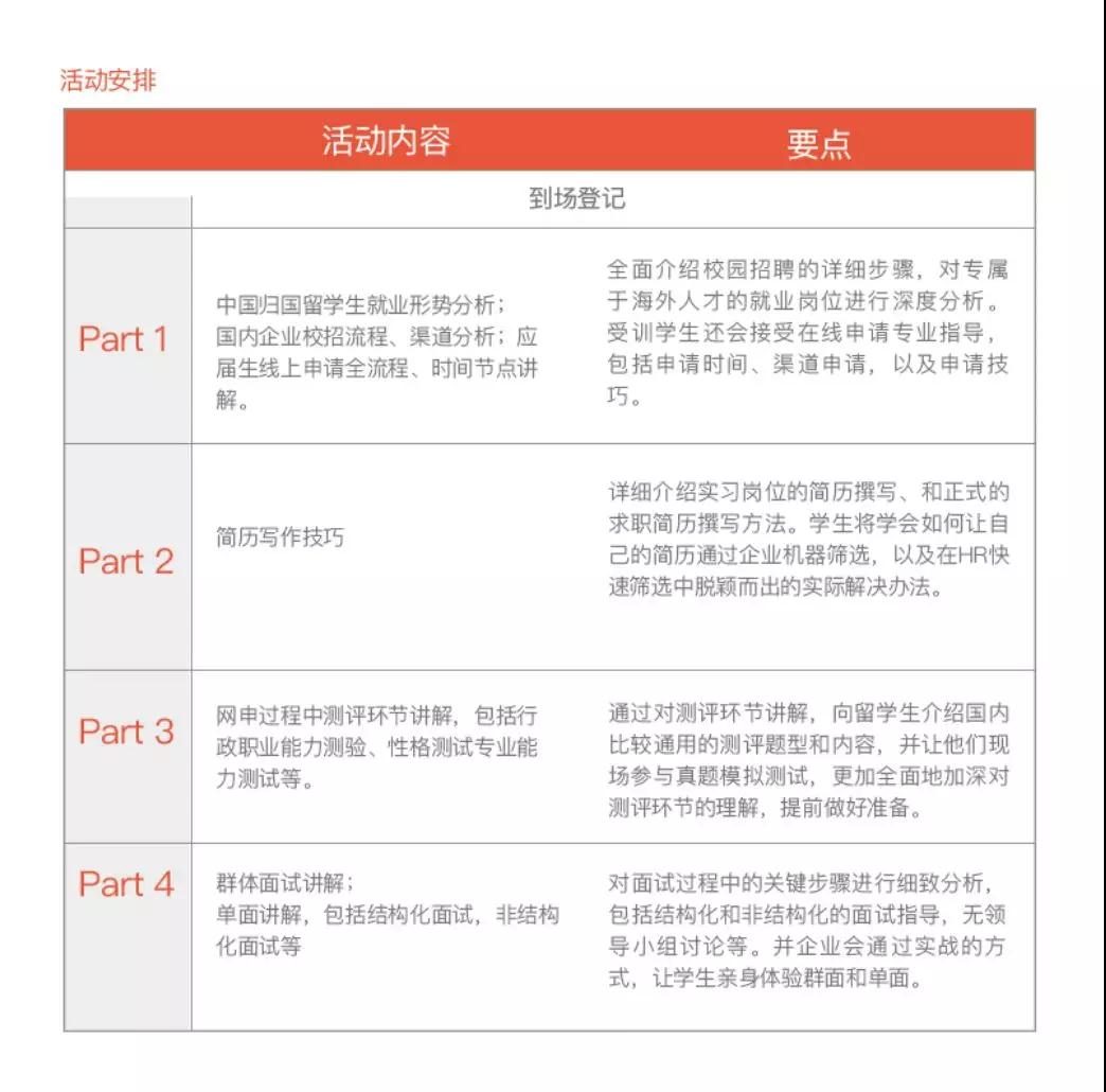 参与 Workshop,帮你获得与国内本土大学生相同的求职知识,掌握适合海外人才的求职技能。你还可以体验超实用的面试实战,现场体验群组面试和个人面试。