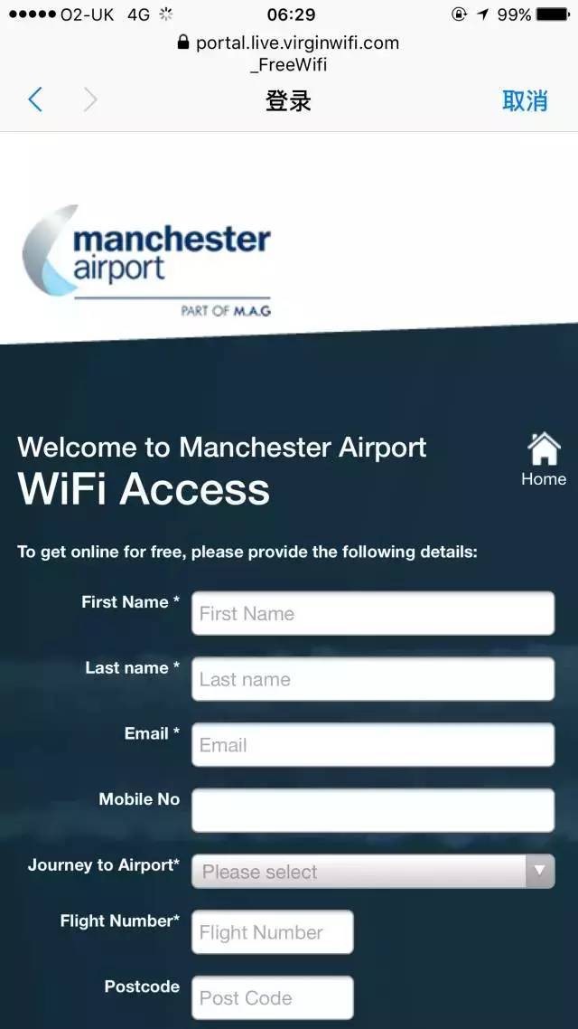 现在英国的各大机场都有免费 wifi 供大家使用,连接起来很快,而且不需要很多繁琐的步骤,可以让你在下飞机第一时间给家里报个平安,也为联系接机的人提供了方便。这里用曼彻斯特机场举例,其他机场都大同小异哦。
