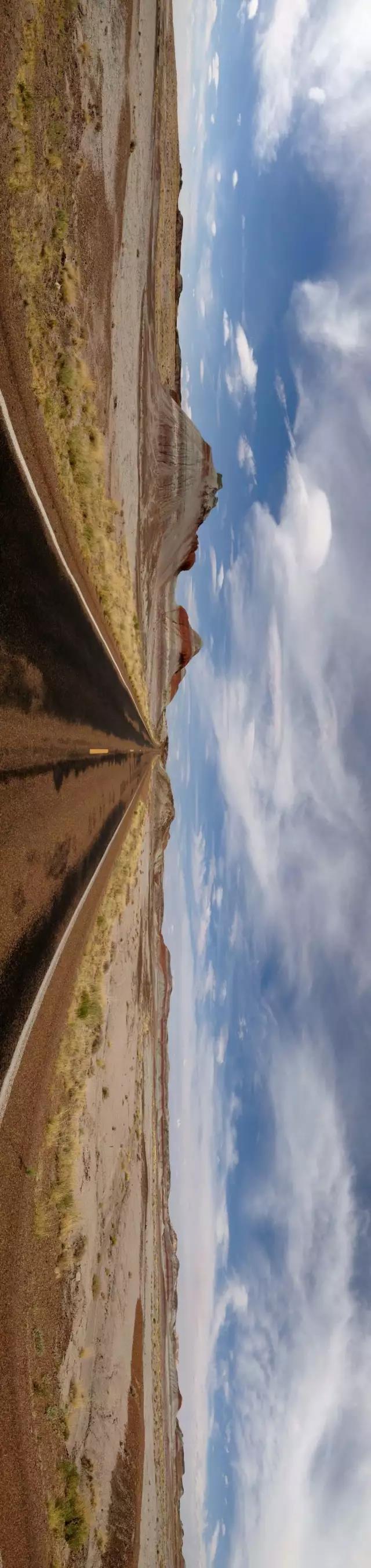 (请将手机横屏观看;亚利桑那州石化林国家公园,旁边的山名为Tepees,因形似印第安人的帐篷而得名,是一种丹霞地貌;拍摄点非66号公路主路;摄影师@52things52weeks)