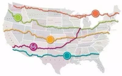 (发行于1946年的歌曲《去66号公路找点乐子/Get your kicks on route 66》,是被翻唱无数次的经典)