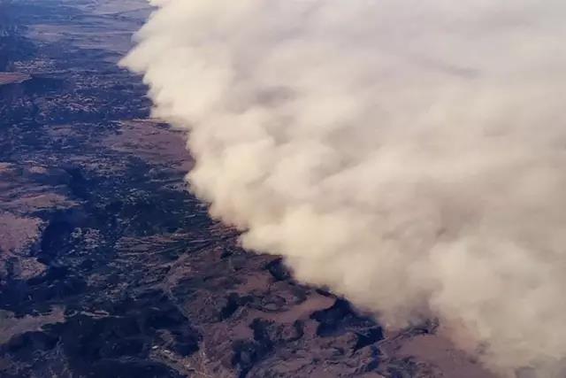 (2014年发生在美国中部的一场沙尘暴,拍摄于从洛杉矶飞往芝加哥的航班上,摄影师@Amana Wicks)
