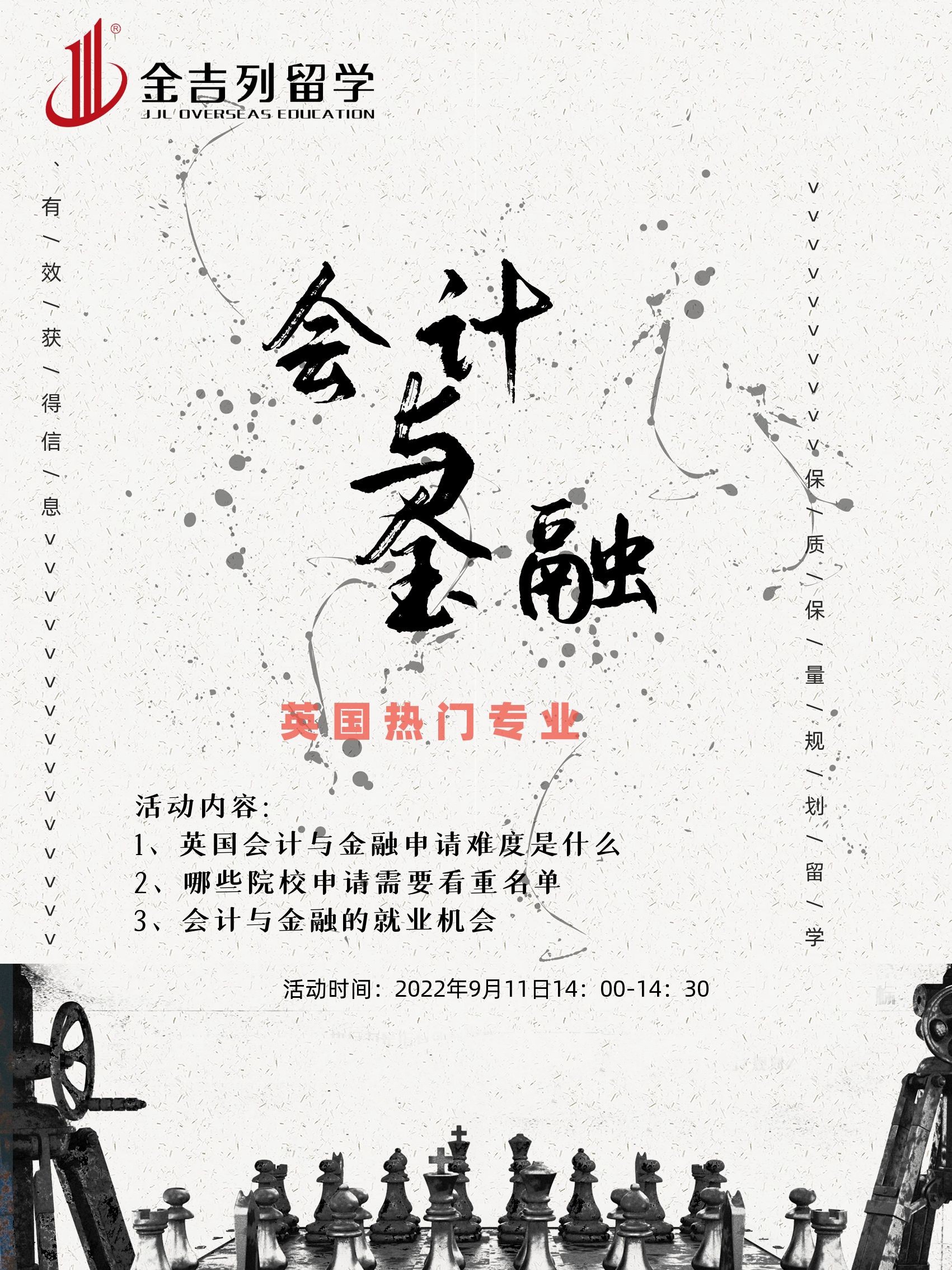 内卷的传媒专业,如何展现自我优势; 会计金融的申请,如何能够逆流而上; 申请英国的本科,又如何拿到名校 offer ; 中秋佳节,带大家一探究竟! 时间: 9 月 10 日 -9 月 12 日 14:00-14:30