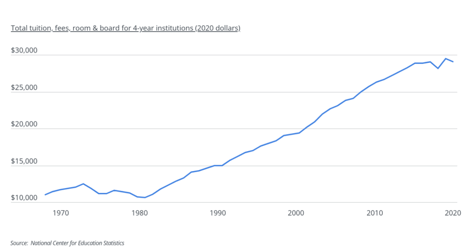根据大学理事会数据,在疫情前的10年中,公立大学学费年均增长率约为 3%,私立大学则为 3.7%。