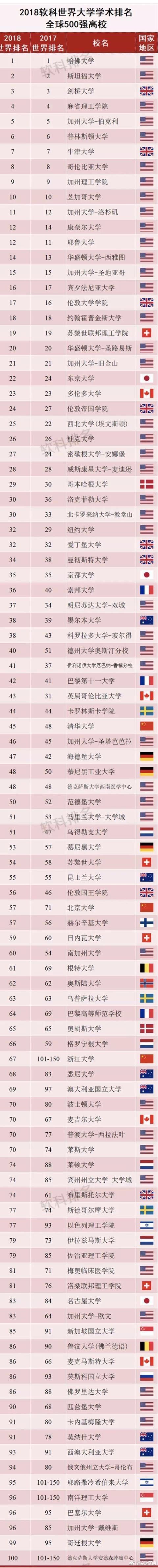 2018年8月15日,2018软科世界大学学术排名正式发布。排名展示了全球领先的500所研究型大学,中国内地共有51所大学上榜。
