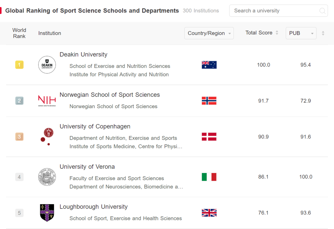 在 软科全球体育科学院系排名 中, 迪肯大学再次被评为世界第一 ,这也是迪肯大学在该学科领域 连续5年 位居全澳大利亚榜首 (2016-2021软科世界大学学术排名)。
