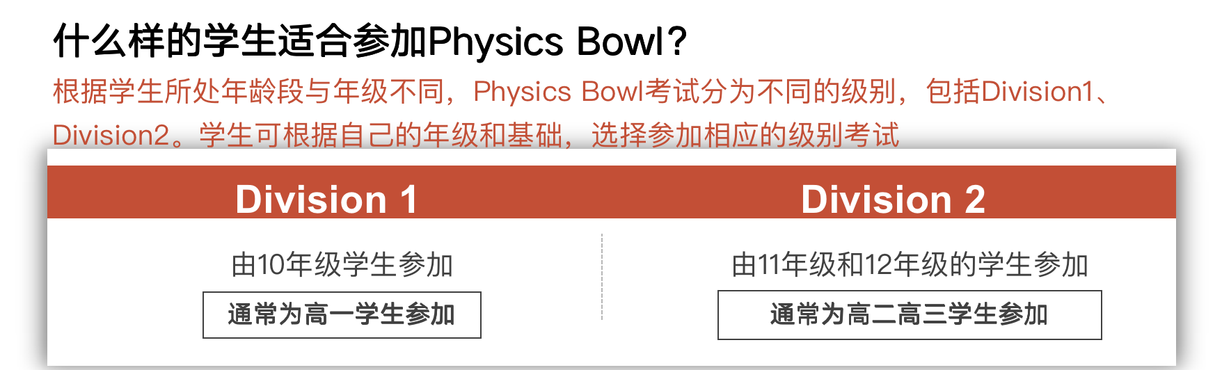 高一学生( IB10 年级, GCSE 的 G1 年级部分优秀学生和 G2 年级)建议选择 Division1 考题(部分有能力的高一学生可以挑战 Division 2 );