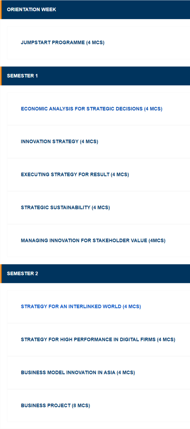 该专业旨在向学生传授各种战略和创新概念和框架,并为他们提供创新如何在不断变化的商业环境中推动增长的新视角。