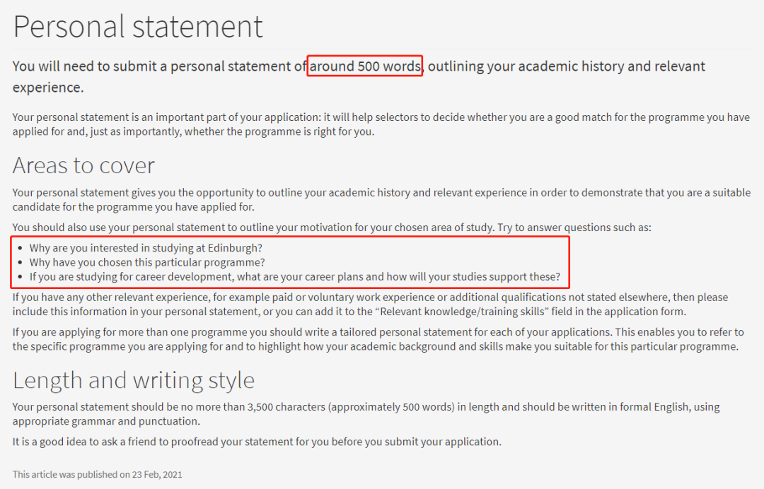 比如爱丁堡大学对申请文书的字数和内容要求如下: