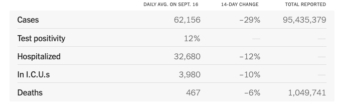 2022年秋季学期开始后,美国全国每天新增确诊人数在6-10万人之间。不过相比2021年同期(当时美国确诊人数出现一波暴增),今年进入秋季后,美国新冠确诊人数 出现下降的趋势 。