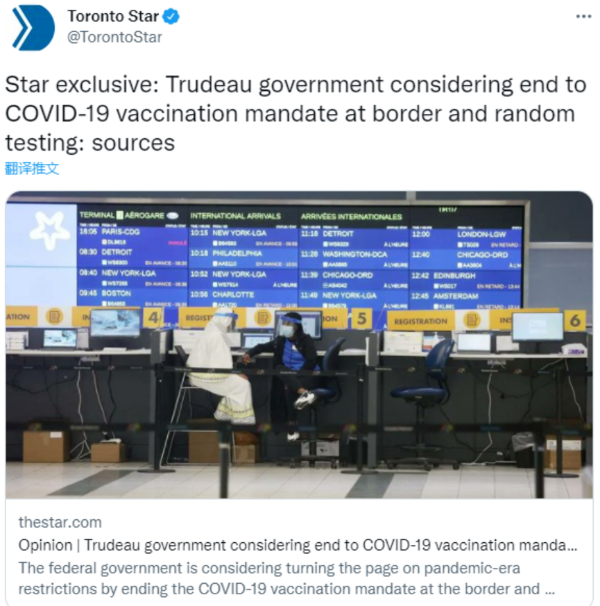 据加拿大报纸最新消息,加拿大政府正在考虑完全放开入境,取消入境疫苗和随机检测的要求。这意味着中国人进入加拿大将更加方便!