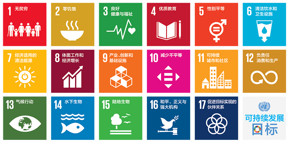 17个可持续发展目标为:
