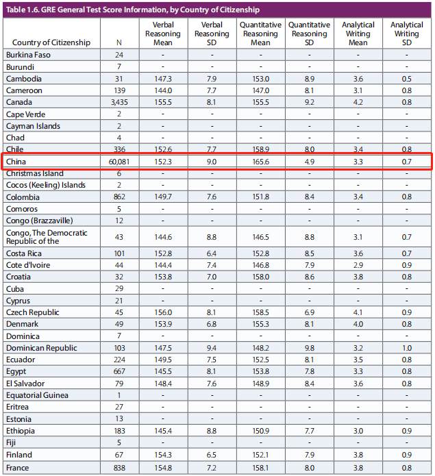 从近几年的数据来看,中国大陆考生的平均分一直比较稳定: