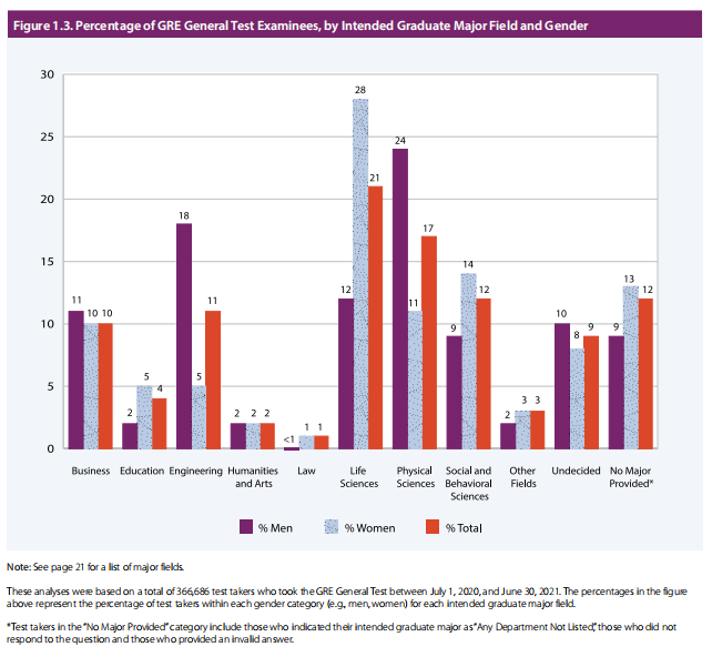 报告中公布了最新 全球GRE考生人数、考试平均分 (包括线下考和在家考的考生)、 研究生专业比例 等数据