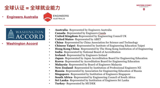全球认证方面,西悉尼大学的工程课程更获得 Washington Accor华盛顿协议的认证,在多个英美国家以及中国均获得工程师资格认证。