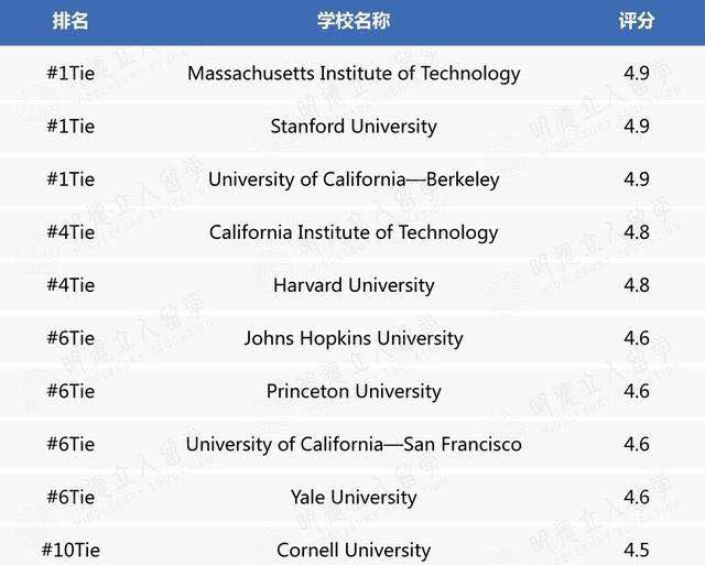 美国十大化工名校有麻省理工学院,加州理工学院,斯坦福大学,加州大学伯克利分校,明尼苏达大学双城分校,德州大学奥斯汀分校,乔治亚理工学院 , 威斯康辛大学麦迪逊分校,普林斯顿大学和特拉华大学。