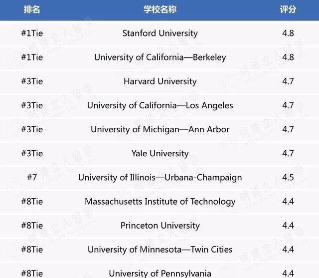 看了这些数字,是不是跟杨社长一样激动,迫不及待要去美国读计算机了呢?下面这几所学校不容错过,根据最新 2019 年 USNews 排名,美国大学计算机科学专业前十院校有卡内基梅隆大学,麻省理工学院,斯坦福大学,加州大学伯克利分校,伊利诺伊大学香槟分校,康奈尔大学,华盛顿大学,乔治亚理工学院,普林斯顿大学,和德州大学奥斯汀分校。