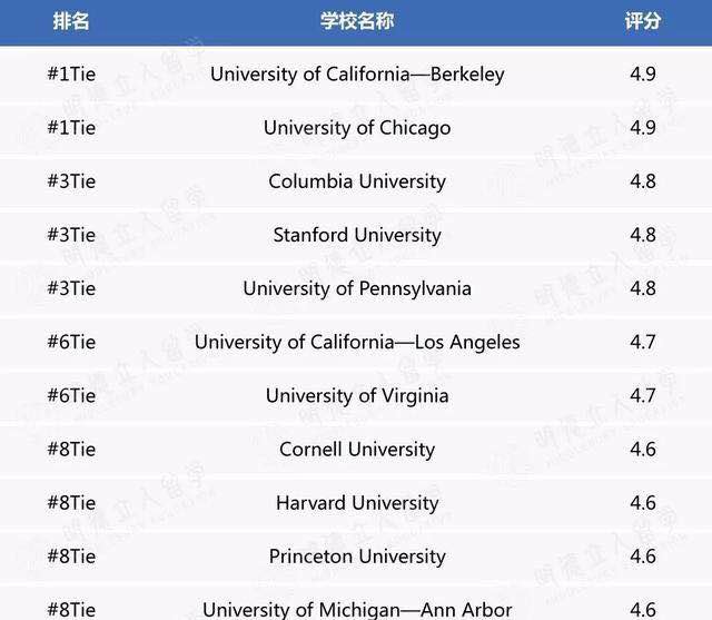 2019 年 US News 美国英语语言文学专业排行榜