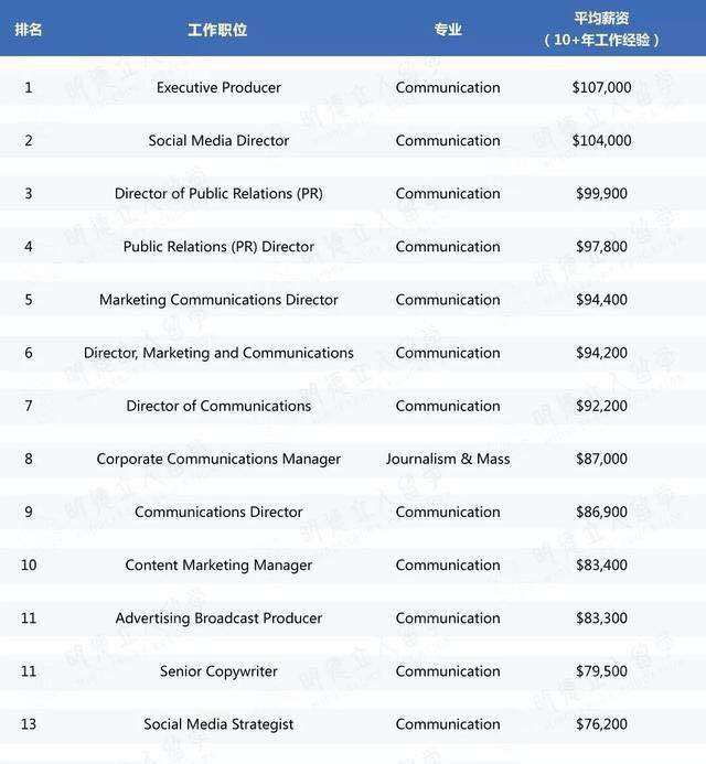 传播学专业最具薪资潜力职位排行榜