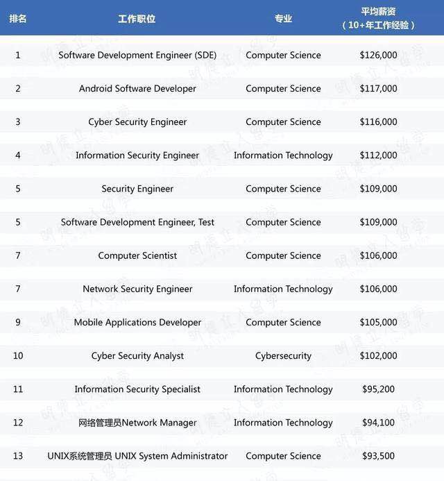 计算机专业最具薪资潜力职位排行榜