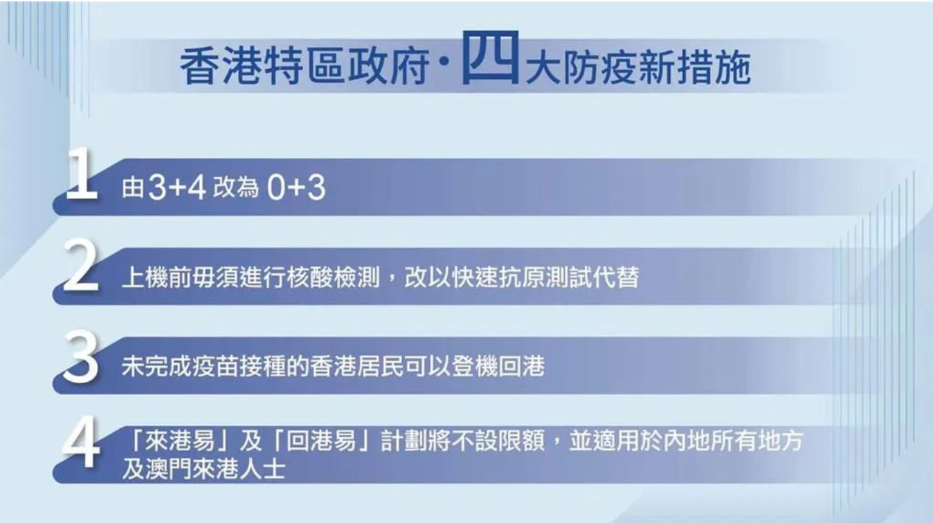 入境香港免隔离,实行“0+3”