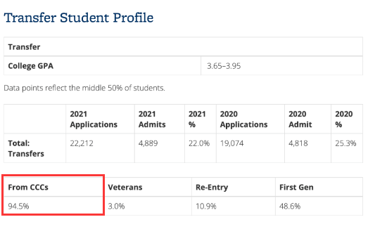 尽管加州大学伯克利分校、加州大学洛杉矶分校没有在这个协议里面,但是这两所大学的转学生仍会照顾本州社区大学的学生,90%+的学生来自社区学院,因而想要从其他院校转到UCB、UCLA,还是更具难度。