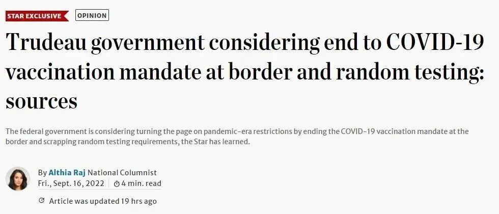 据英文媒体Toronto Star报道,联邦政府正考虑结束疫情期间实施的边境限制,代表着大流行的彻底结束。