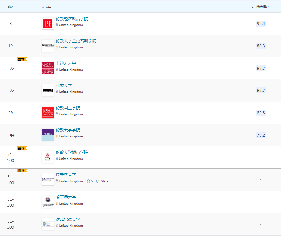 2022年QS世界大学学科排名
