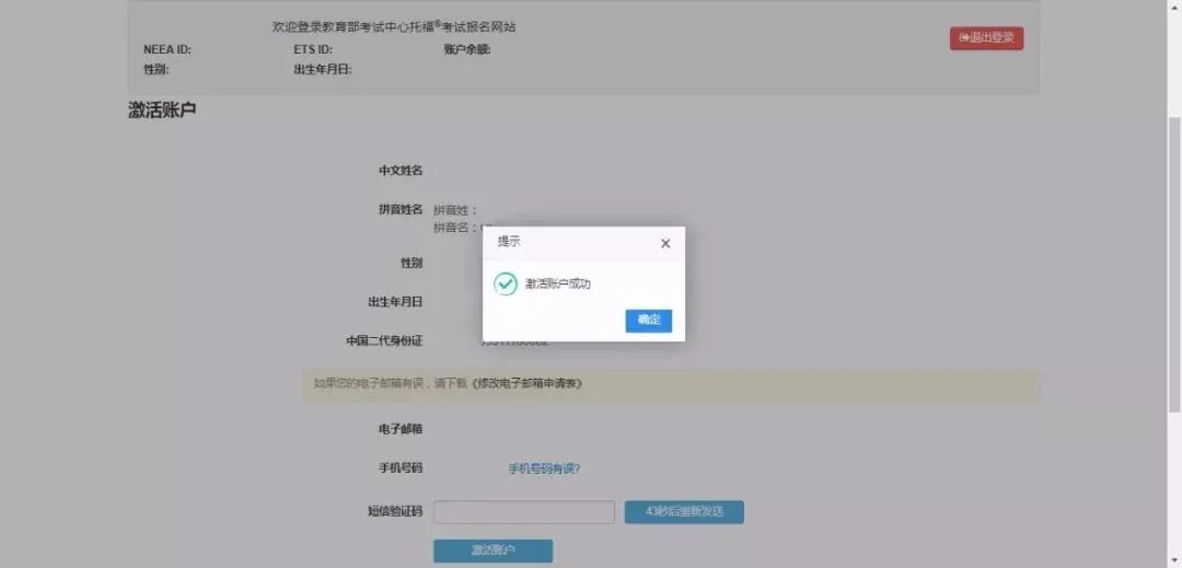 邮箱验证完成后,在你的托福主页点击“下一步”,系统将提示你发送验证码至注册时填写的手机号,进一步完成短信验证。