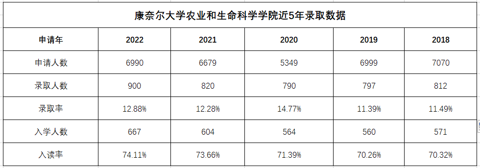 以下是各学院的近5年录取数据,包含申请人数,录取人数,录取率和入读人数。