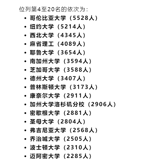 紧随哈佛大学的是斯坦福大学(7972人)和宾大(7517人)。
